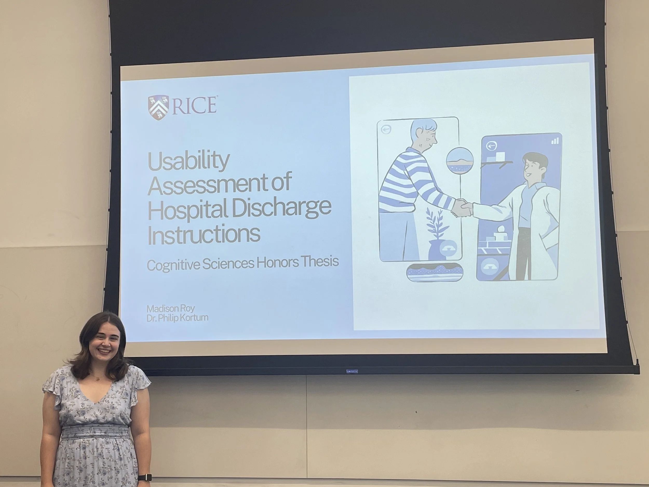 During my senior year at Rice University, I conducted an honors thesis titled "Usability Assessment of Hospital Discharge Instructions." I investigated whether various dimensions of hospital discharge instruction paperwork impacted the usability of these documents.